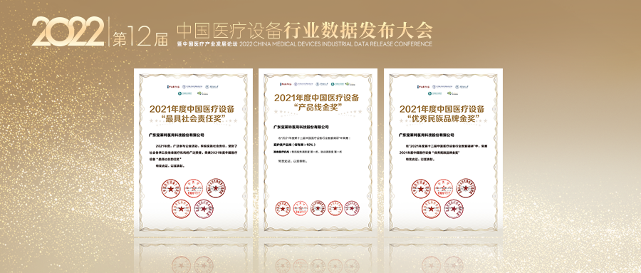 7月16日,2022年第十二届中国医疗设备行业数据发布大会线上召开。大会正式发布《2021年度中国医疗设备行业数据调研报告》。leyu.乐鱼凭借在行业内的突出表现及客户认可,荣膺监护类 “产品线金奖”、 “优秀民族品牌奖”以及“”最具社会责任奖”三大奖项。