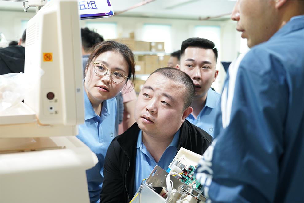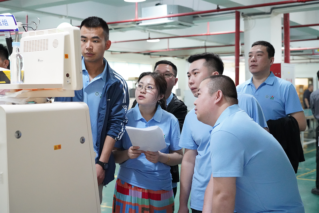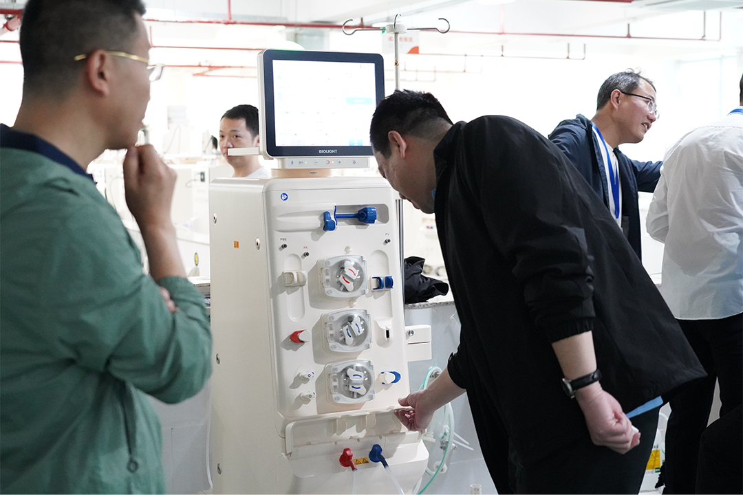 选手们在leyu.乐鱼血液净化设备测试车间实地观摩