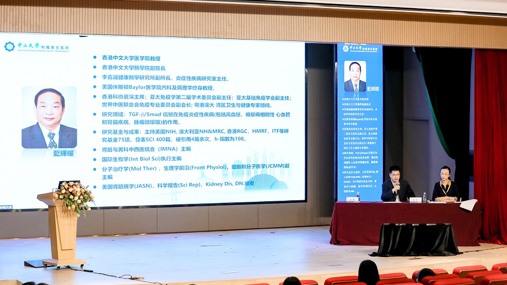 为促进珠澳地区与国内肾脏病领域同行的学术交流,中山大学附属第五医院肾内科及珠海各机构肾脏专科联合澳门肾科学会邀请了肾病学专家陈香美院士、珠海市卫生健康局贵艳副局长、中山大学附属第五医院李中和副院长、澳门镜湖医院肾内科主任欧阳梓华教授先后为本次盛会致辞,为珠澳肾脏病的发展指明了方向。