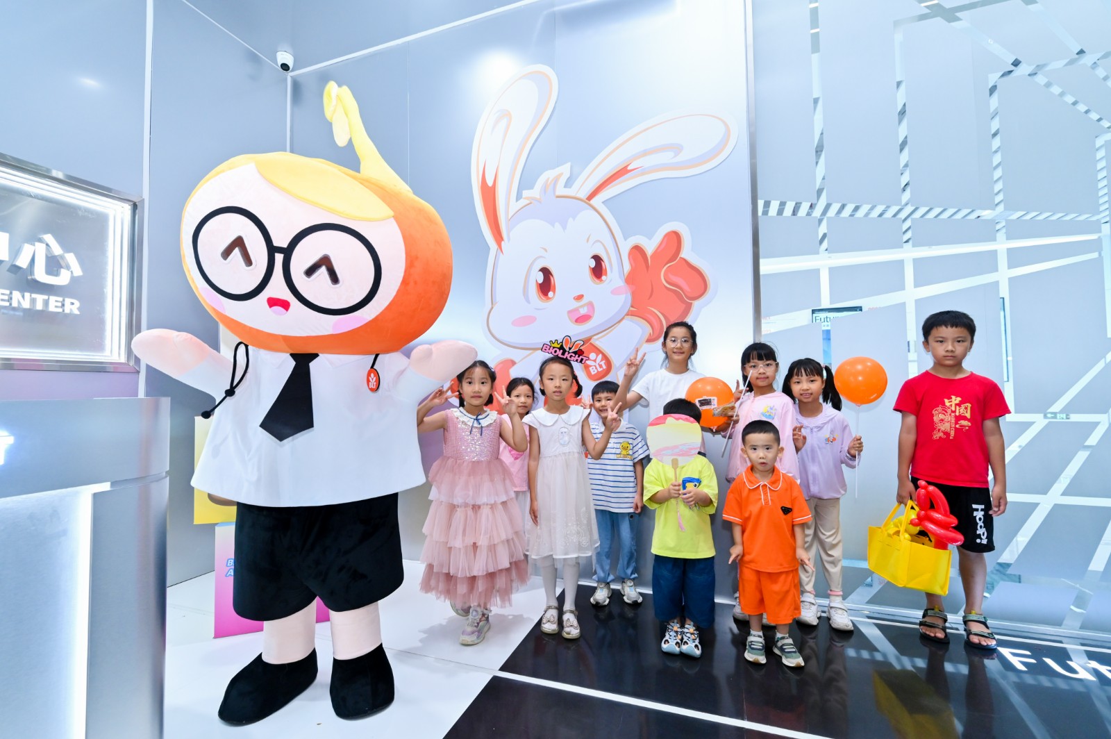 以童趣启智: 兔子姐姐手持 “邓小平南巡”“中国入世”卡通手举牌,将企业史转化为“宝莱兔的时光旅行”。孩子们从LOGO的双手托起生命太阳中读懂守护生命的初心。
