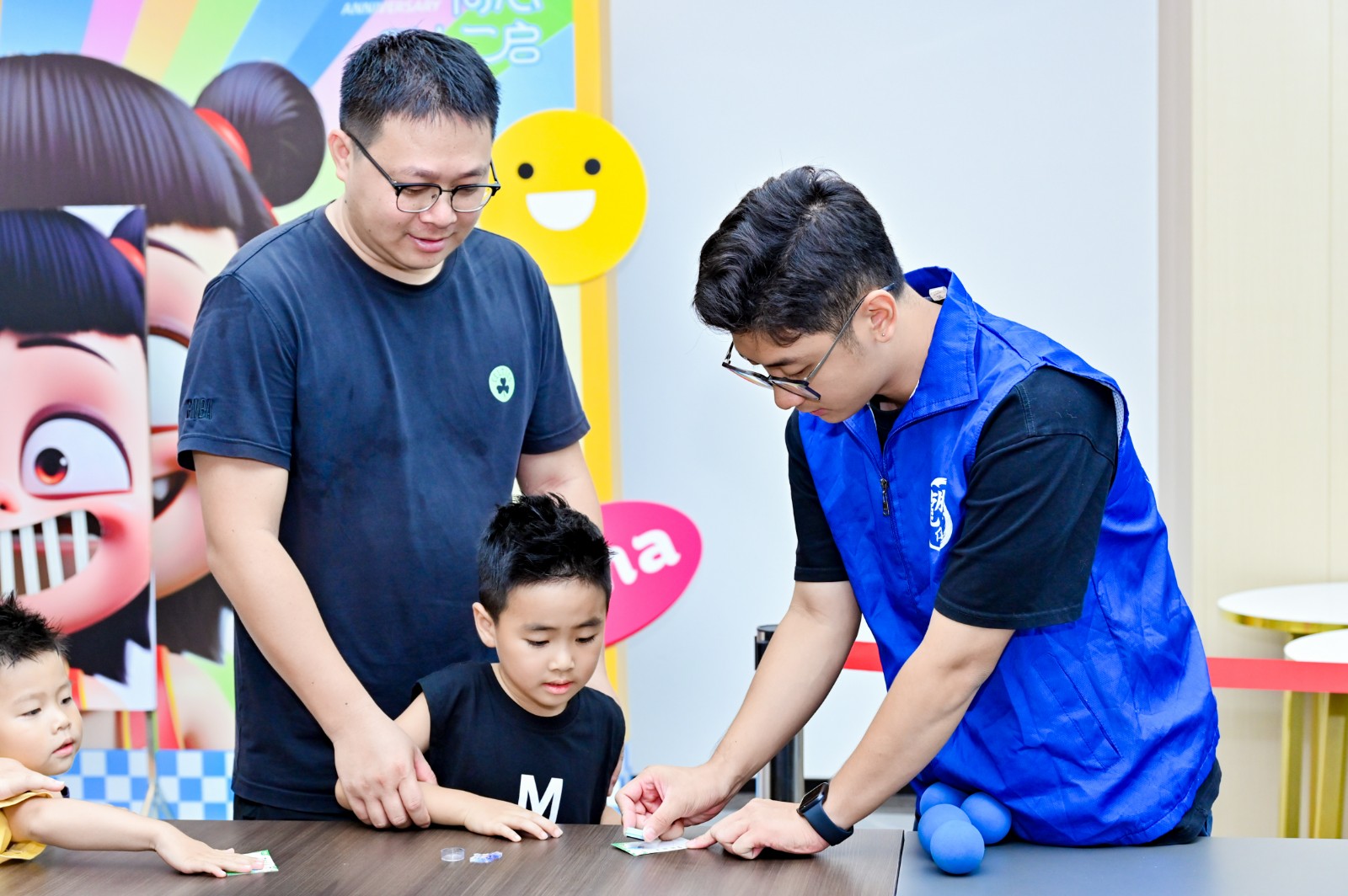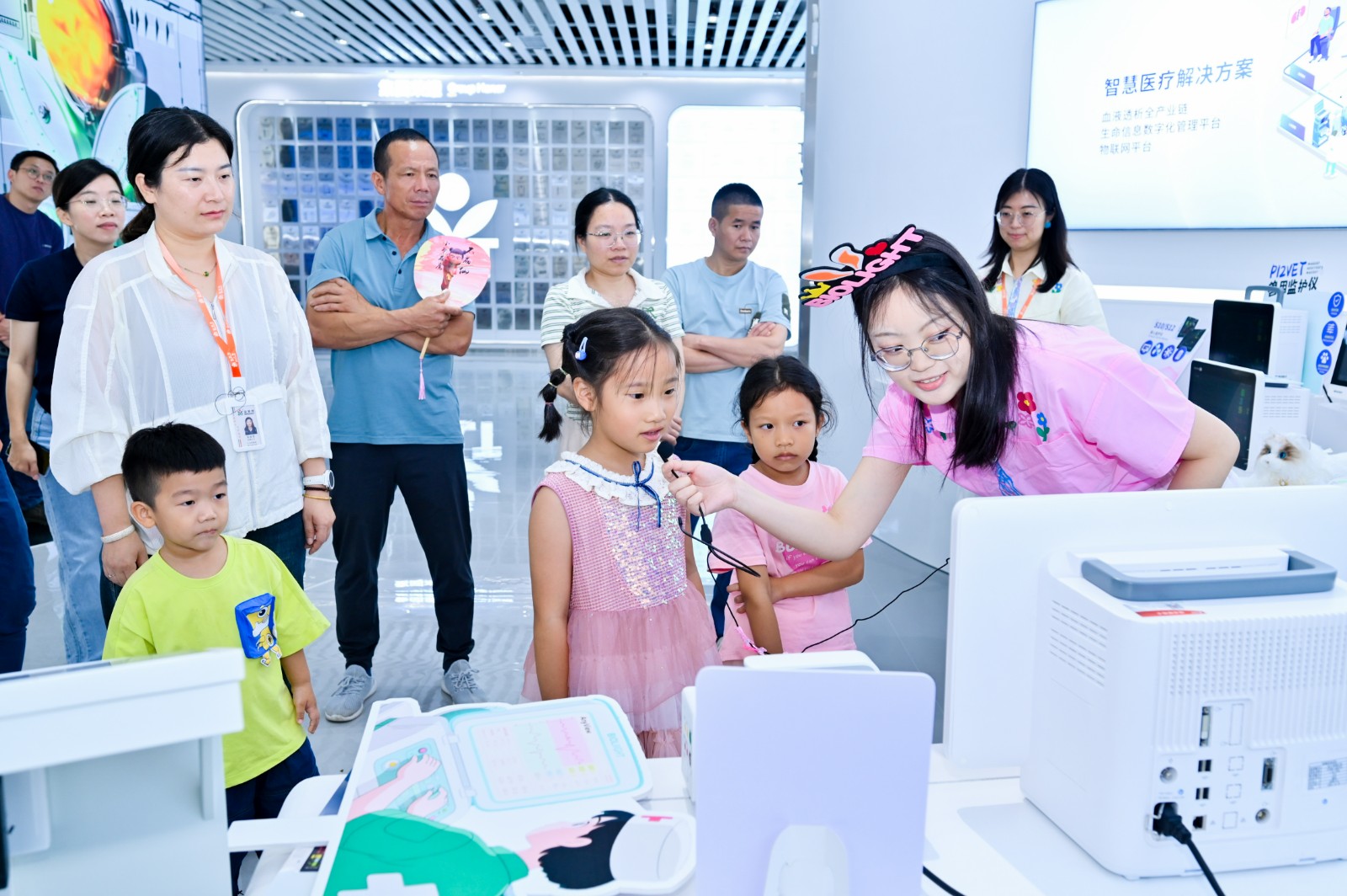 典礼的荣光未散,科技园已切换为温情的共生图景。一楼的亲子游园会上,非遗漆扇DIY的墨色在纱面晕开文化传承,真人娃娃机中的欢声诠释着“聚光向WE来”的深意——“WE”既是员工家庭的小单元,亦是医患同心、产业协力的宏大叙事。孩子们紧握集章卡兑换伴手礼的笑靥,恰似企业温度最轻盈的注脚。